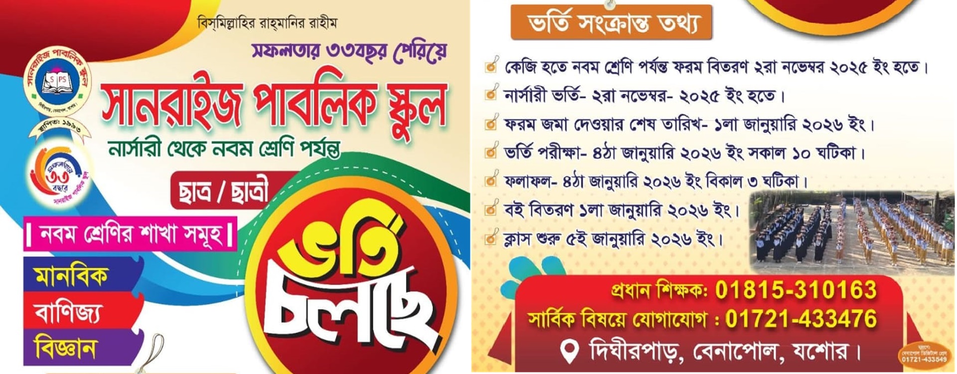 সানরাইজ পাবলিক স্কুল, শার্শা উপজেলার স্বনামধন্য প্রাইভেট স্কুল।এ স্কুল ১৯৯৩ সালে প্রতিষ্ঠিত হওয়ার পর সুনামের সাথে পাঠদান করে আসছে।বর্তমানে স্কুলটিকে এসএসসি লেভেল পর্যন্ত উন্নিত করা হয়েছে।