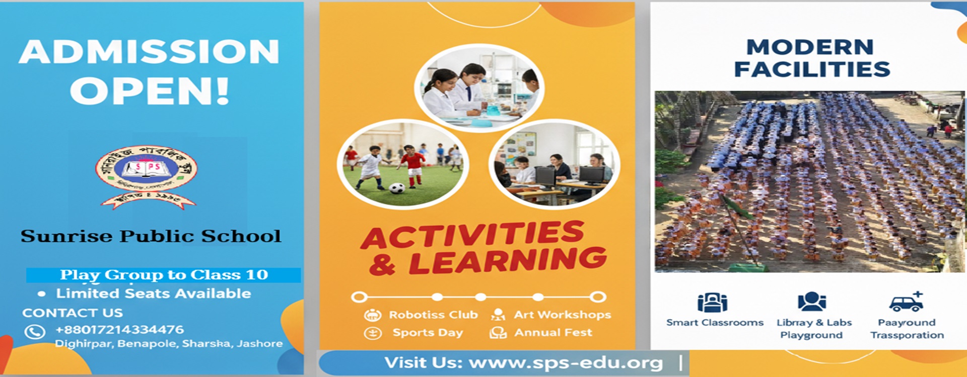 সানরাইজ পাবলিক স্কুলের চারিদিকের কোলাহল মুক্ত পরিবেশের মাঝে শ্যামল সুন্দর সবুজ আঙ্গিনায় আমাদের এ বিদ্যালয়টি প্রায় এক হাজার শিক্ষার্থীদের শান্তির নীড়